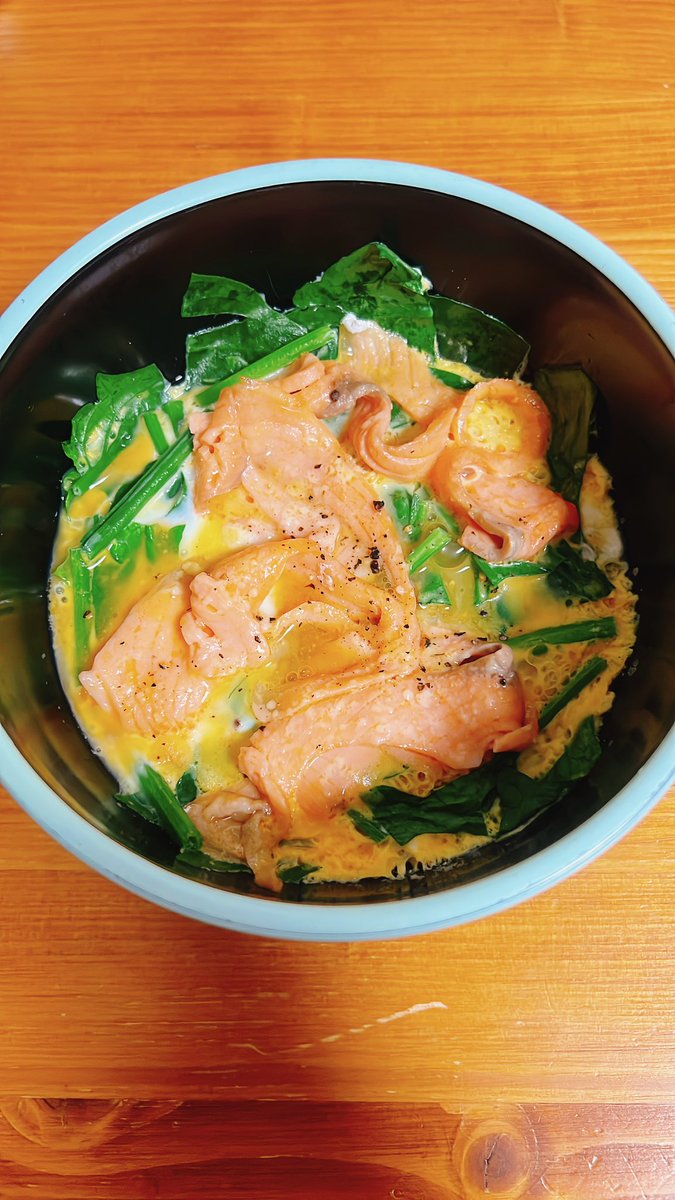 【サーモンとほうれん草の卵とじ】を、作ってみた。