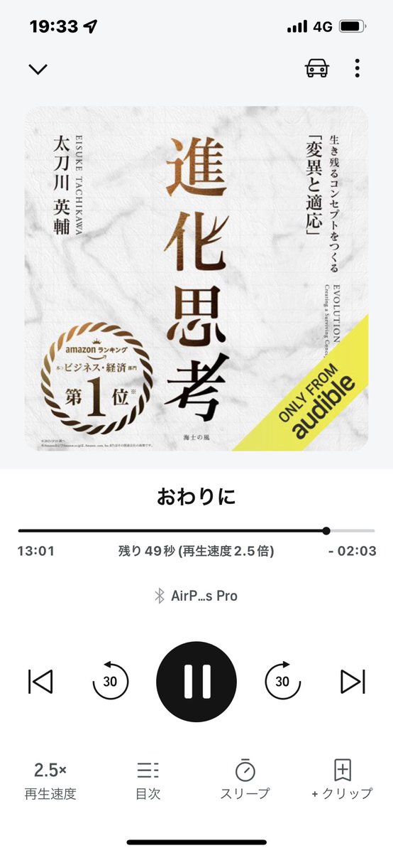 仕事に時間を取られるにつれてオーディオブックを聴くスピードが上がっていき、今はデフォルトが2倍速になってる笑