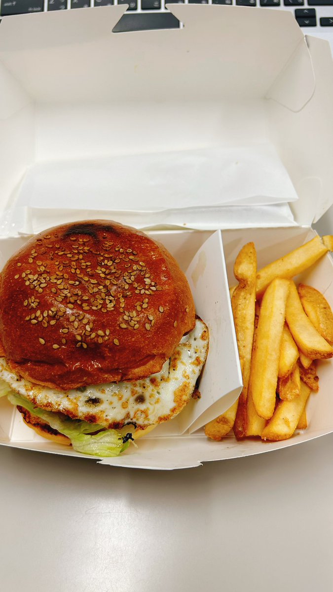 会社のご厚意にあやかり、ランチ代無料でエッグバーガー食べた🍔